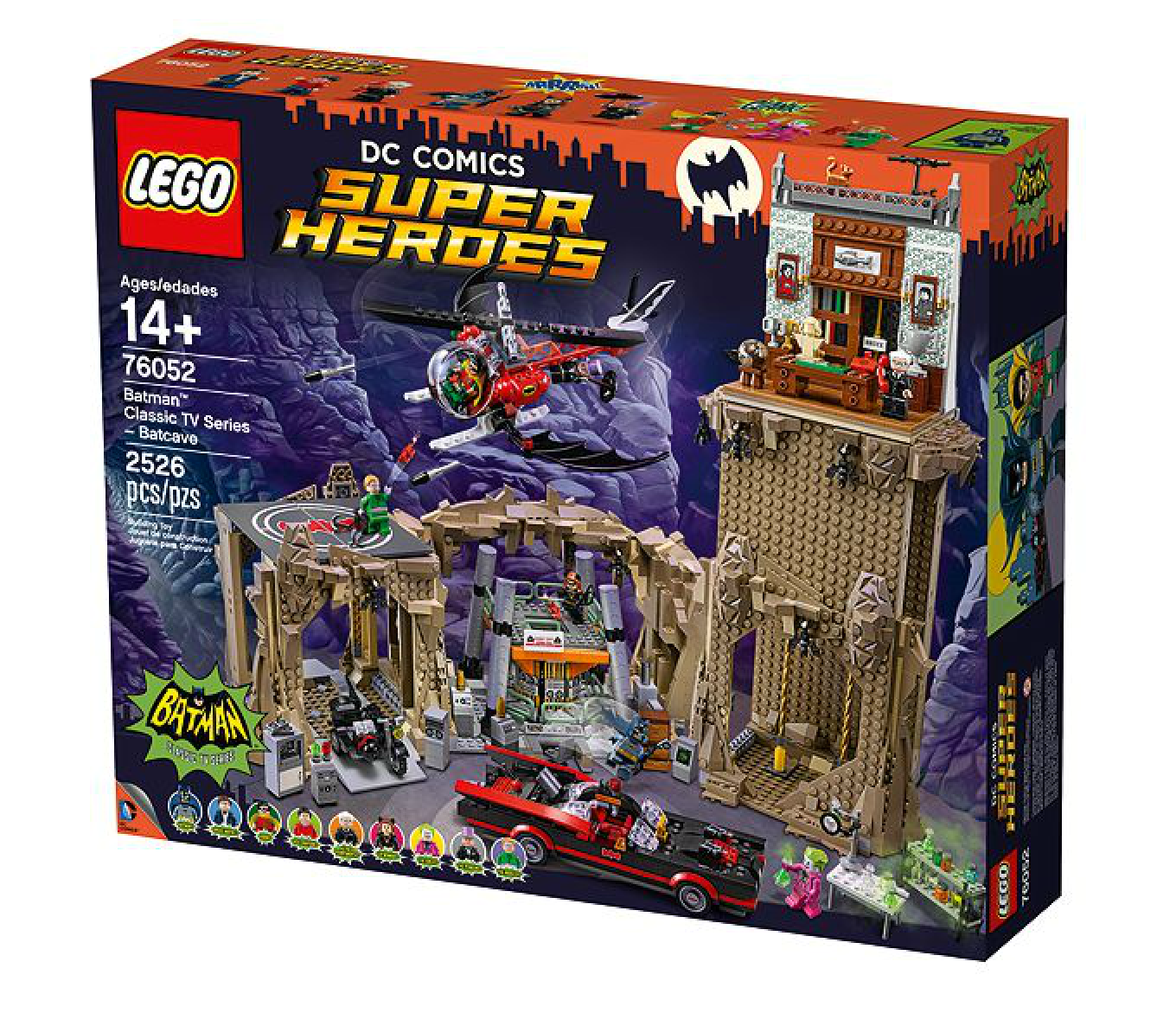 - This LEGO® model of the Batcave as seen in the classic 1960s TV series features 2 Batpoles for Batman™ and Robin™ to slide down, a selection of Bat-gadgets, helipad, plus a Batmobile and Batcopter.